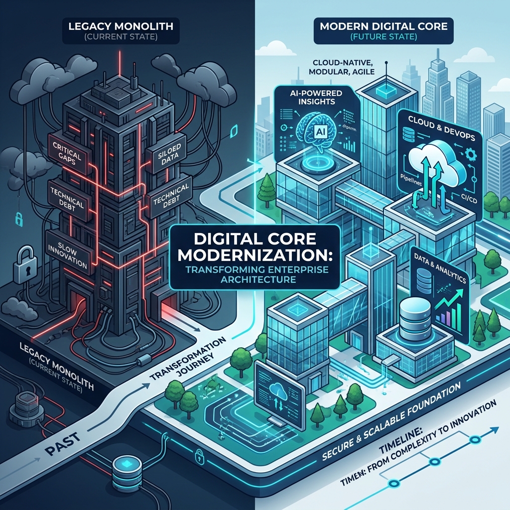 A deep dive into the architectural challenges and strategic imperatives of modernising the digital core in global enterprises, focusing on legacy debt and cloud-native transitions.
